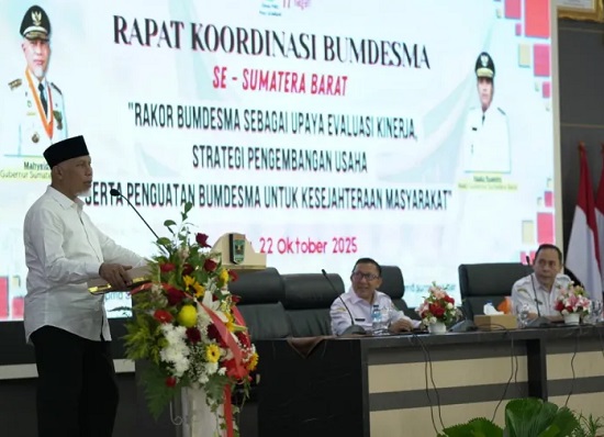 PADANG - Gubernur Sumatera Barat Mahyeldi menegaskan pentingnya memperkuat peran Badan Usaha Milik Desa Bersama (BUMDesma) sebagai penggerak ekonomi lokal dan pencipta lapangan kerja di tingkat nagari. Hal itu disampaikan Mahyeldi saat membuka Rapat Koordinasi (Rakor) BUMDesma se-Sumatera Barat di Auditorium Gubernuran, Rabu (22/10/2025). Mahyeldi mengatakan potensi ekonomi nagari di Sumbar sangat besar, namun belum tergarap optimal. Menurutnya, sejumlah tantangan masih dihadapi BUMDes dan