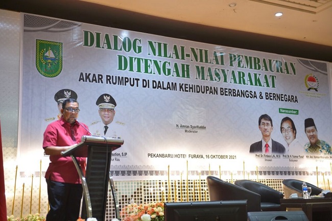 Wakil Gubernur Riau (Wagubri), Edy Natar Nasution membuka dialog nilai-nilai pembauran masyarakat di Pekanbaru, Sabtu (16/10/2021) |