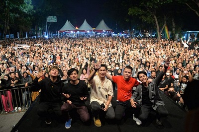 PEKANBARU - Pelaksanaan Kenduri Rakyat bersama Armada Band dalam rangka peringatan Hari Jadi ke-65 Provinsi Riau dan Hari Ulang Tahun (HUT) ke-77 Republik Indonesia Tahun 2022 dibanjiri ribuan masyarakat Pekanbaru dan daerah sekitarnya.
