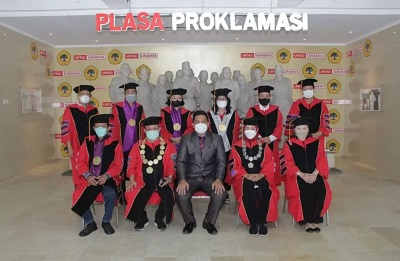 Sejumlah penguji yang hadir saat sidang terbuka di antaranya adalah Doktor yaitu sebagai Ketua Prof. Dr. Mulyanto Nugroho, MM, CMA, CPA dari Untag, Promotor Prof. Dr. Arief Darmawan, SU (Untag).
