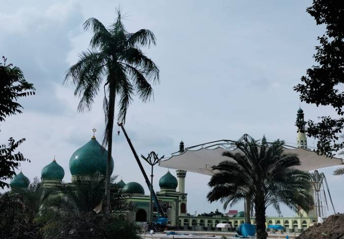 PEKANBARU - Pemerintah Provinsi (Pemprov) Riau memberi kesempatan 50 hari kerja kepada rekanan pembangunan 6 payung elektrik Masjid Raya Annur Provinsi Riau.