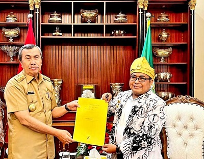 Wakil Ketua PGRI Riau, Ekowi (kanan) saat bersama Gubri Syamsuar |