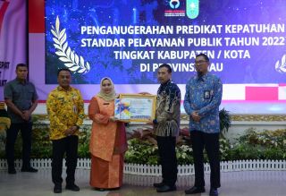 PEKANBARU - Sebanyak enam Kabupaten/Kota di Provinsi Riau menerima penganugerahan predikat Kepatuhan Standar Pelayanan Publik (KSPP) tahun 2022, di Gedung Daerah Balai Serindit, Selasa (28/02/2023).