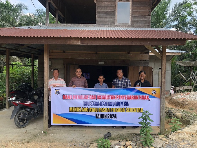Tokoh pemuda Desa Batu Ampar Kemuning Inhil, Syafrizal dan Panit 2 Subdit 4 Direktorat Intelkam Polda Riau, Ipda Yandri Mardi, SH beserta jajaran foto Bersama dengan jajaran Dit Itelkam Polda Riau sambil memegang sapanduk Menolak dan Mengutu Penyebaran Hoax, Isu Sara dam Adu Domba jelang atau pasca Pilkada Serentak 2024.(ist) |