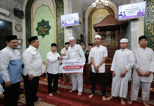 Wakil Gubernur Riau dan BRK Syariah serahkan bantuan saat safari Ramadan di Masjid Al Muhsinin, Kamis (6/3/2025) lalu. |