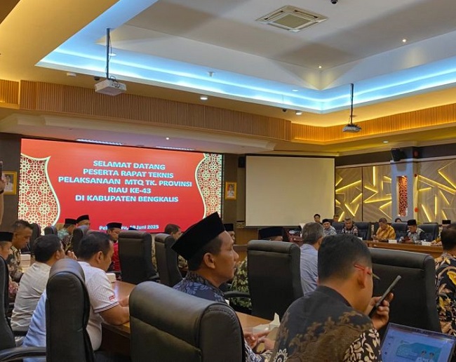 PEKANBARU – Pemerintah Provinsi Riau terus mematangkan persiapan pelaksanaan Musabaqah Tilawatil Quran (MTQ) tingkat Provinsi Riau ke-43 Tahun 2025, yang akan digelar di Kabupaten Bengkalis pada 28 Juni hingga 5 Juli mendatang.