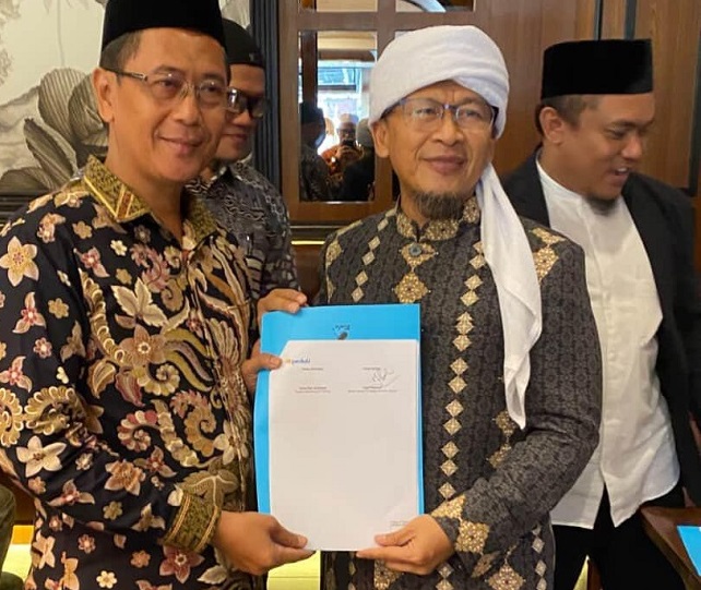 MoU ditekan langsung Ketua ICMI Pekanbaru Prof.Edi Erwan,M.Sc, Ph.D dan Abdullah Gymnastiar atau Aa Gym sebagai perwakilan DT Peduli. di sela Acara Kajian Tauhid yang disampaikan oleh Aa Gym,Minggu (25/1/2026) di Hotel Pangeran Pekanbaru