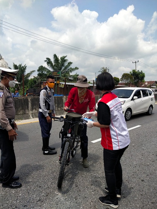 “Bahkan kami menaiki satu bus dan membagikan masker kepada beberapa penumpang di dekat Polsek Rumbai,” ujar relawan yang bernama Meri Fang.