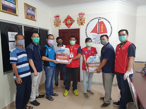 Tionghoa Peduli Penanggulangan Covid-19 Riau menyerahkan sembako kepada Ikatan Keluarga Tionghua Selatpanjang & Sekitarnya (IKTS) untuk dibagikan kepada masyarakat yang membutuhkan.
