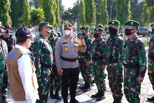 PEKANBARU - Pangdam I/BB Mayjen TNI Irwansyah, MA, MSc, memimpin Apel Kesiapsiagaan Penanggulangan Kebakaran Hutan dan Lahan (Karhutla) di Provinsi Riau, yang digelar di halaman Kantor Gubernur Provinsi Riau pada Sabtu pagi (4/7/2020).